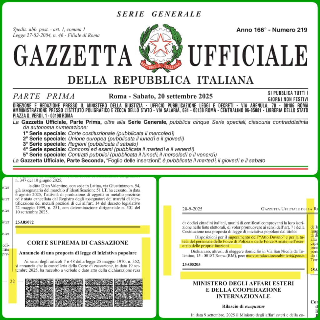 - proposta di legge di iniziativa popolare "Disposizioni per il superamento dell'"Atto Dovuto" e per la tutela del personale delle Forze di Polizia e delle Forze Armate nell'esercizio delle proprie funzioni"